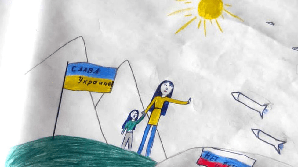 The supposedly ‘anti-Russian’ picture contained 2 flags- Russia and Ukraine. With ‘нет войне, слава Украине’ (No to war, glory to Ukraine) was written above it. Since then her life has drastically changed; over a few scribbles on a page.